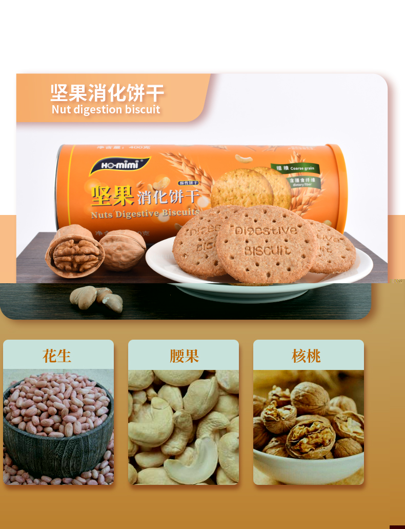 原味消化餅干、堅(jiān)果消化餅干、雜糧消化餅干